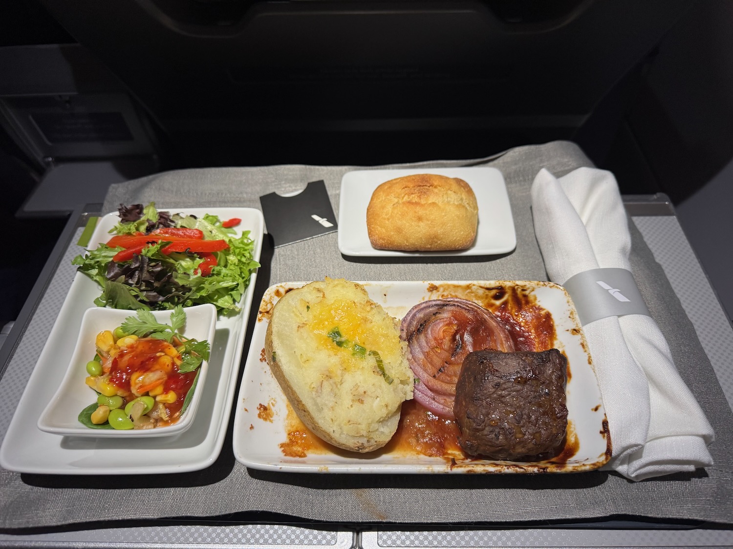 (well, I did eat my “first” dinner in the Admirals Club prior to the flight in case the short rib turned out bad…)