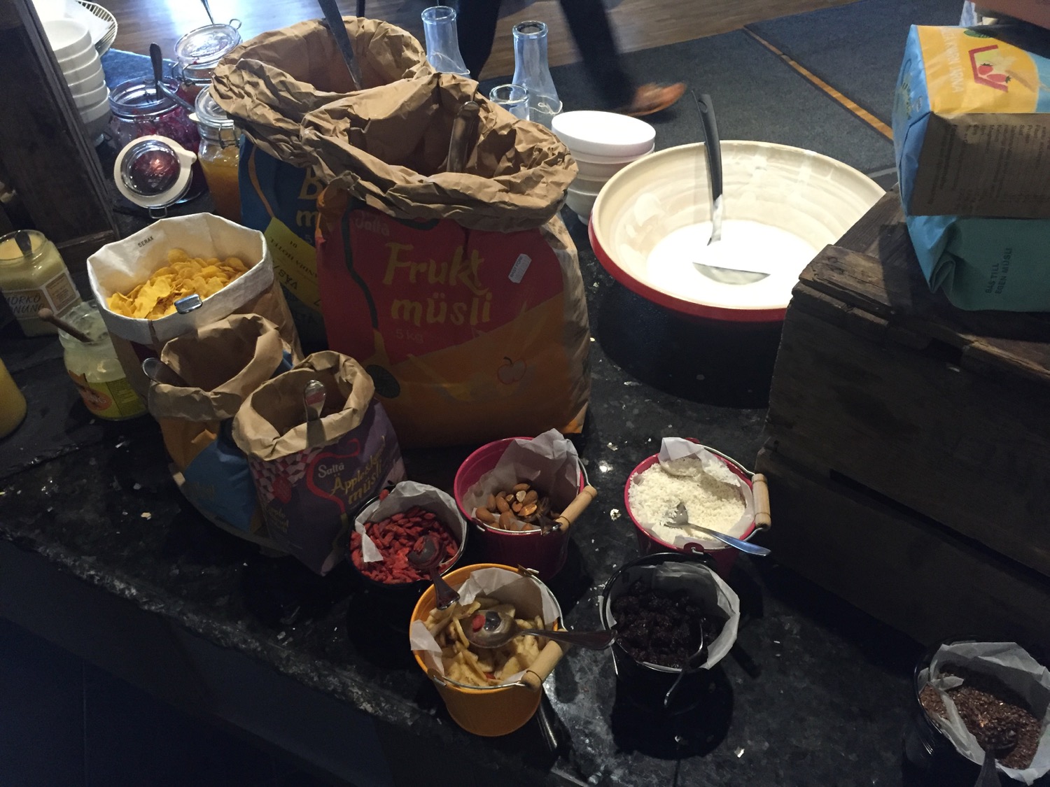 You can see, the room and our view of a brick wall outside was simply “meh”. But the hotel made up for it in a big way with breakfast. The breakfast buffet the following morning, complimentary for al hotel guests, was tremendous. The selection and quality was amazing and would put the Hilton Stockholm Slussen (where we spent the next evening) to shame.