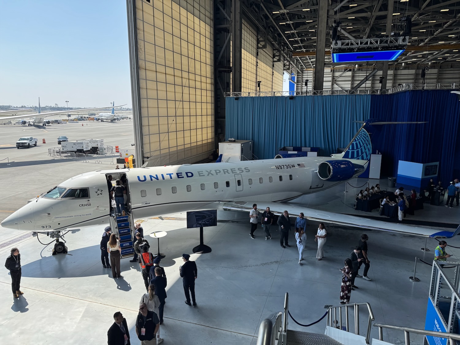 As part of United Airlines’ recent media event in Los Angeles, I had the chance to step onboard its new Bombardier CRJ450 and take a close look at every seat and detail. This is not a brand-new aircraft, but it represents a very throughful makeover of the regional flying experience on the most-loathed jet in the United Express fleet.